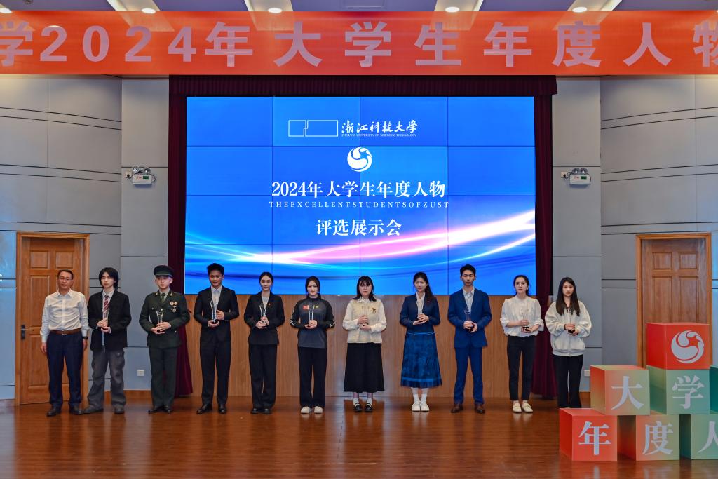 本次年度人物评选以“寻榜样奋进之路,启青年逐梦之帆 ”为主题,经过多轮评审,产生20位候选人参加现场展示。他们围绕学术科研、创新创业、志愿服务、社会实践、文化艺术、体育竞技、国际交流等方面,讲述拼搏故事、诠释青年担当,展现了浙科大学子奋力逐梦、奋勇攀登的青春风采。经现场投票,自动化211方苗旭(国际交流类)、电气224尤壹杰(自强奋进类)、化工22级研究生王佳欣(笃学力行类)、机器人工程(中澳) 221潘欧特(创新创业类)、汉语言文学222朱鸿乐(志愿公益类)、化工21级研究生金临轩(学术科技类)、计算机213尚莹莹(体育运动类)、国际商务(中澳)211华涵清(社会实践类)、国际商务23级研究生张威、视觉传达与数字媒体22级研究生蔡智鑫(文艺活力类)等10位同学获得“大学生年度人物”。